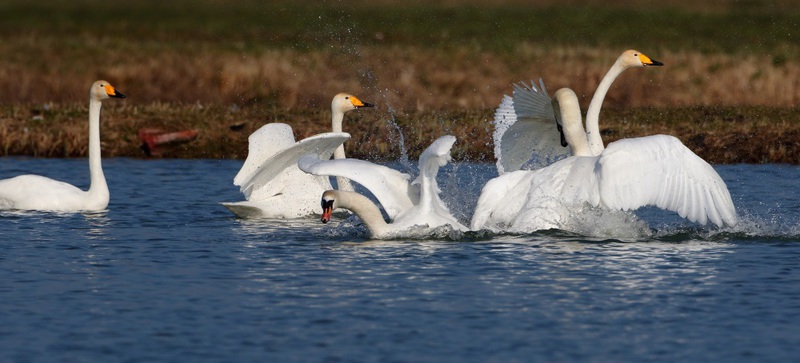 Im März 2016 hatte ich das Glück, im fränkischen Weihergebiet Sing- und Höckerschwäne zu fotografieren. Durch den Gesang der Singschwäne fühlte ich mich wie in Skandinavien.